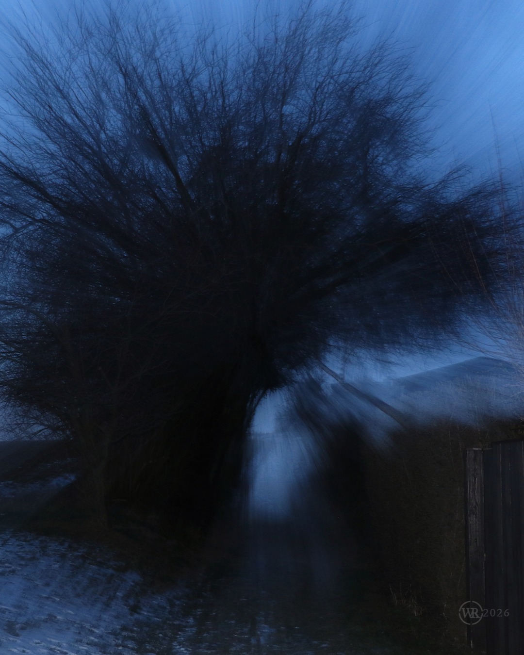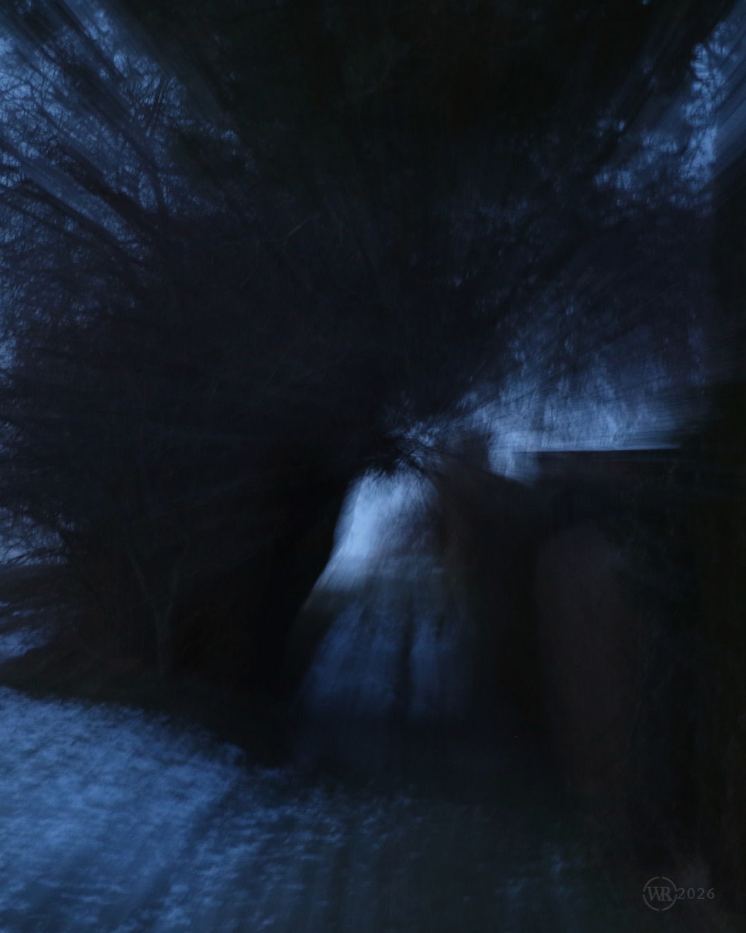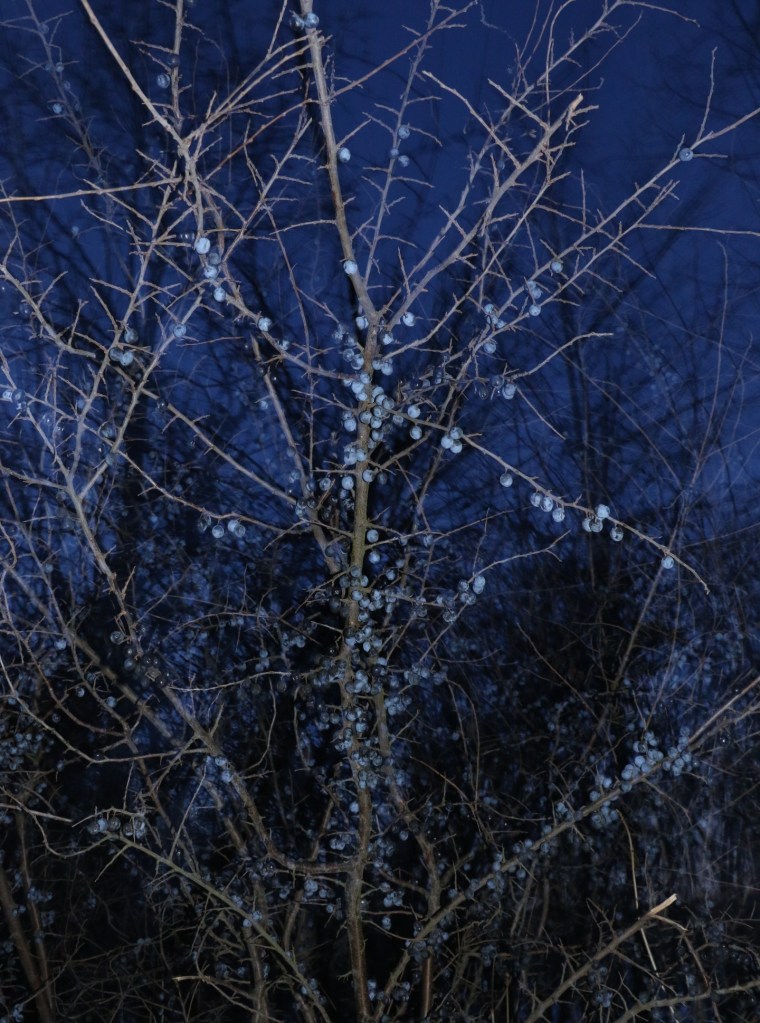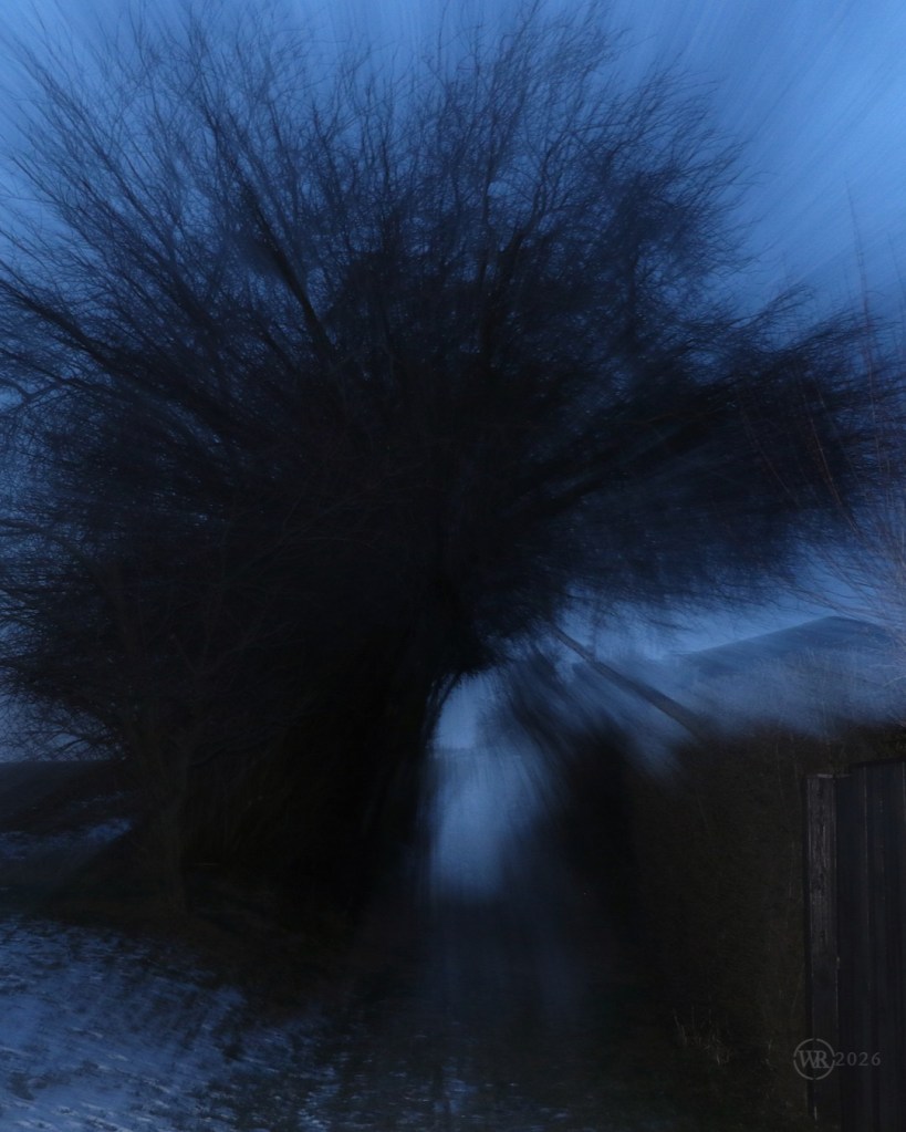 Tunneling my way through the cold of January, hedgeriding and still listening to the silence… Me, the low light and the camera. Long exposure brings out the dynamics and shifting forms that the mundane eye does not see. Here is Janus in the ivy, the door and the gate in the thicket, hawthorn tree: divine interface and eye opener, mistletoe the alien being in between the worlds, breaking with the laws of space and time, sloes in the dark of night, communion with the past, guarded by pins of slumber…