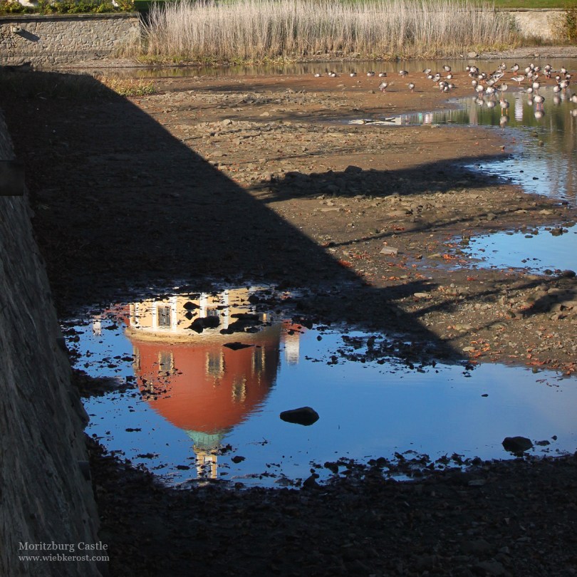 Castle reflection in the remaining water of the lake as it slowly empties before the winter; soon it’s going to be fished dry