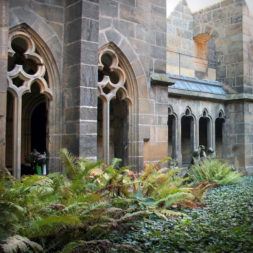 Cloister, belonging to the Dome of Meißen; there hardly gets any sunlight into the yard, which is covered in ivy and fern