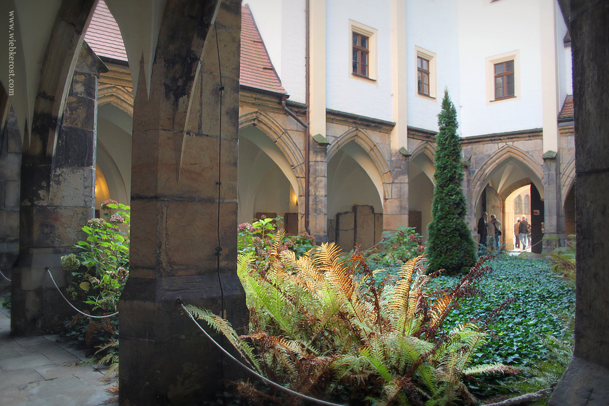 Cloister, belonging to the Dome of Meißen; there hardly gets any sunlight into the yard, which is covered in ivy and fern