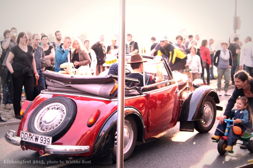 Elbhangfest 2015, old timer passing by whilst Sensifer is playing