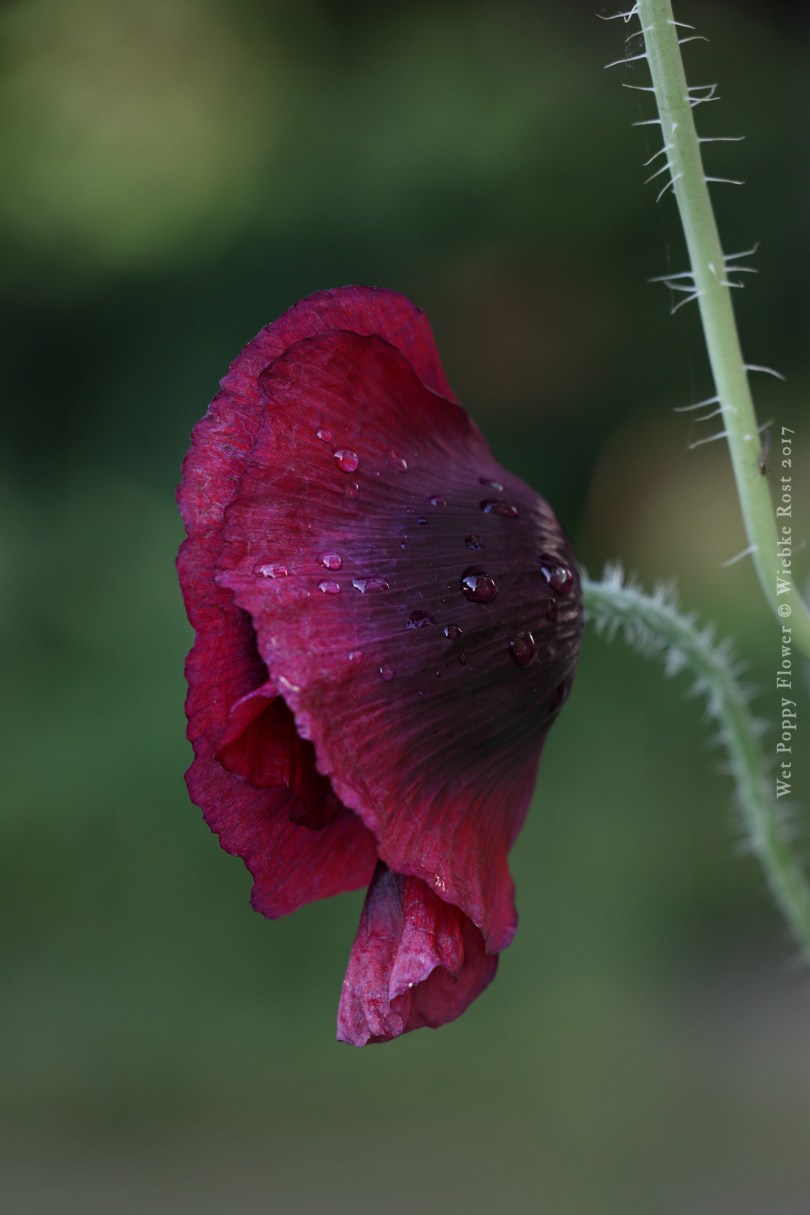 Poppy flower after the rain, photographed June 2017. I adore the color. Every morning new flowers with different colors and shapes open, as the old ones fade, just as Harold Roth described in his book “The Witching Herbs”.