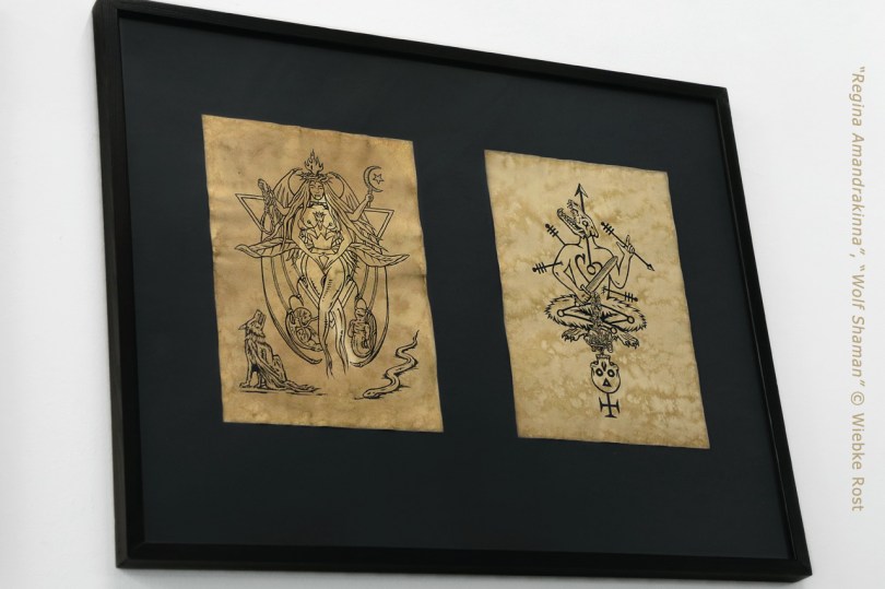 “Regina Amandrakina”, “Wolf Shaman” – ink on coffee, wormwood, mandrake and blood | ink on coffee, wormwood and aconite