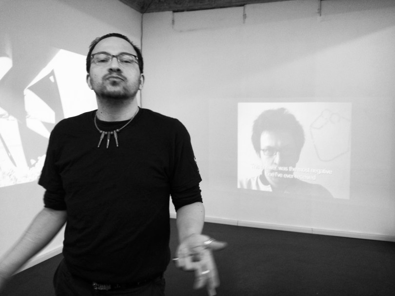 Impressions from the exhibition opening at @circle1gallery – punk legend, writer and curator Avi Pitchon plays the protagonist in one of Keren Cytter’s short films (“The Dates Series”, 2004).