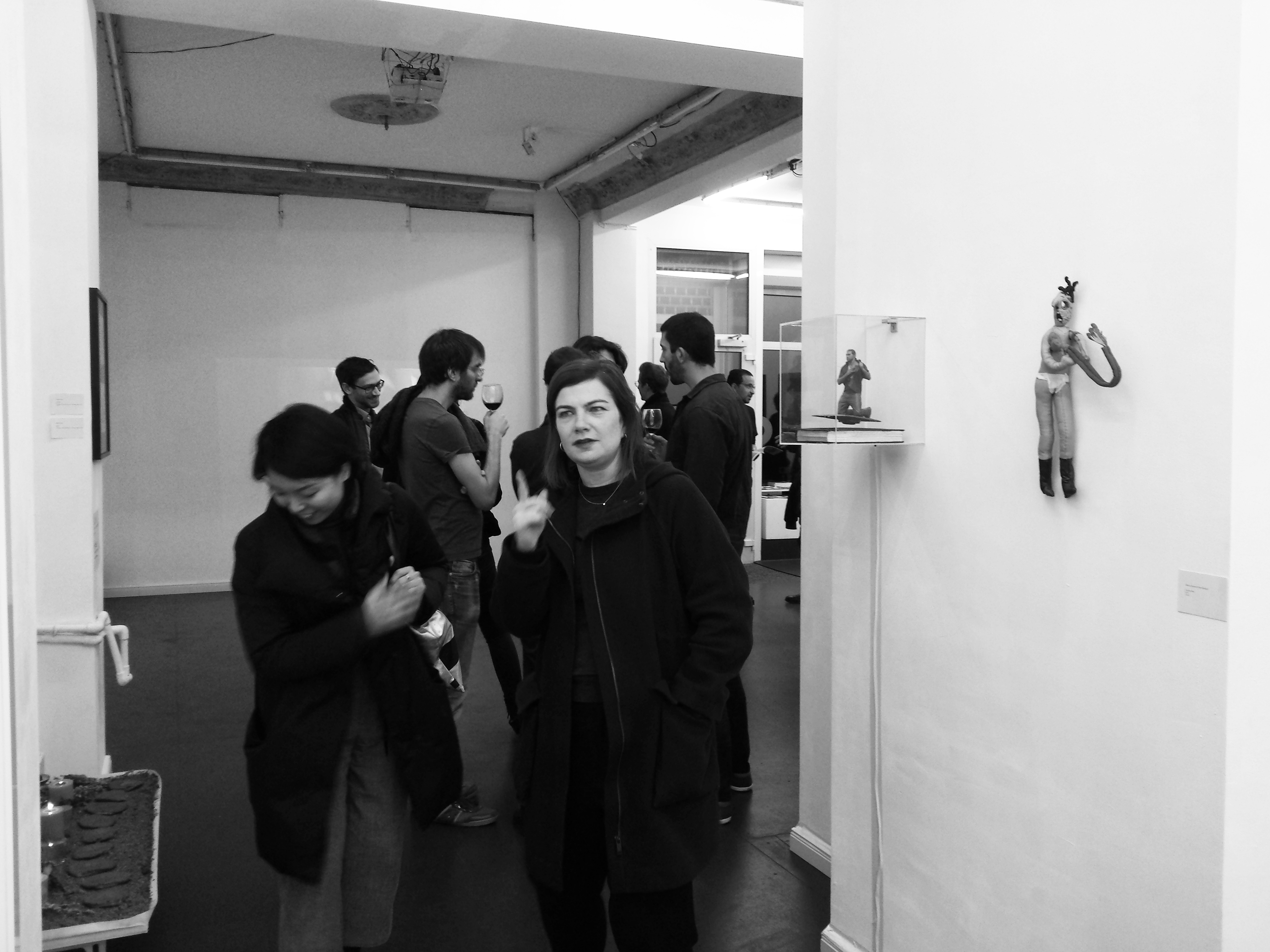 Impressions from the exhibition opening at @circle1gallery – the topic and objects gave food for thought. On the wall oposit my harvest altar you see the suicide hitler and the incredibly realistic miniature of a levitating suicide bomber by Osama Zatar.