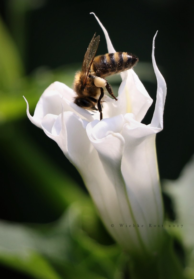 Bee entering white Datura stramonium flower, Aug. ’17