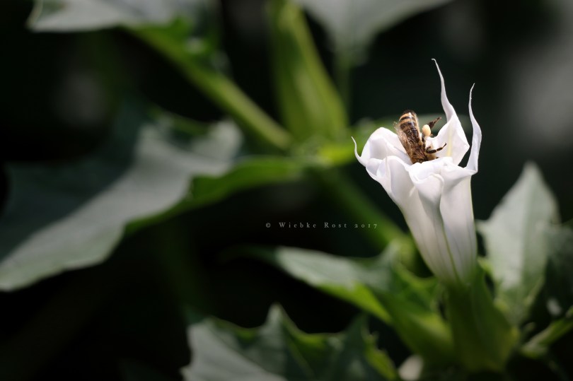 Bee entering white Datura stramonium flower, Aug. ’17