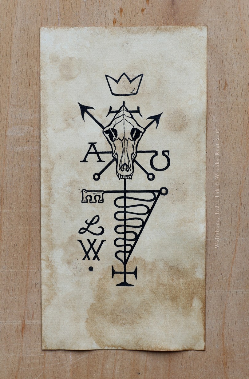 “Wolfsbane”, India ink on stained paper, 2017