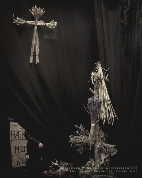 The installation is hence titled “Harvest” and consists of an earthen altar with dried plants and harvest related offerings: self baked bread, honey from the neighborhood and self-made beeswax candles. The souls and spirits that were contained in the once alive, now dead corpora of the plants, find a new house in the form of fetishistic ink drawings: the “Sigilla Magica” series.