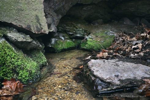 3 AprOn Easter Sunday – the last weekend before my move to Düsseldorf, my mom took me to a well, where we gathered natural spring water. A couple told us, a big toad was hiding inside the rocky cavity surrounding the well. I gathered the water in a brown glass bottle and washed the apple wood disc, which I had pyrographed with my “Blessing Seal of Spring”.