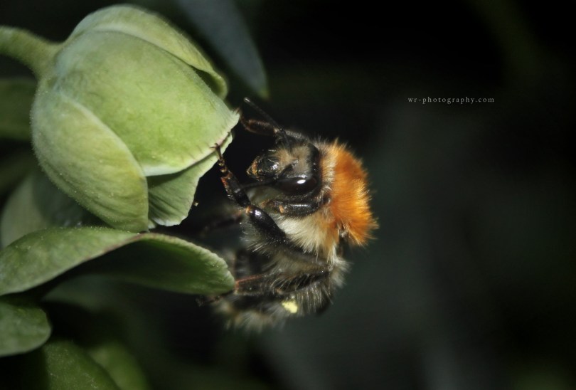 Common Carder Bee (Bombus pascuorum), on Stinking Hellebore (Helleborus foetidus)