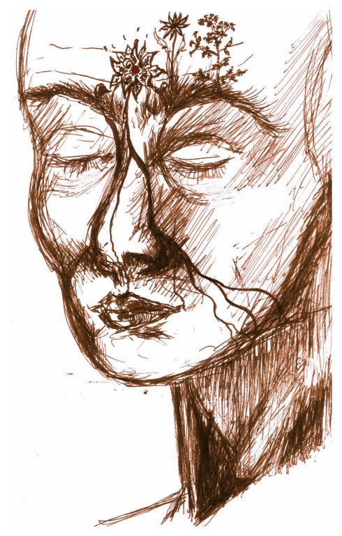 The first piece is an old sketchbook drawing, called “Meditation”. It is quite simply about withdrawal from the world and seeking refuge in nature, a “silent resistance” if you will.