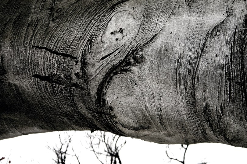The smooth texture of the bark of an old beech tree